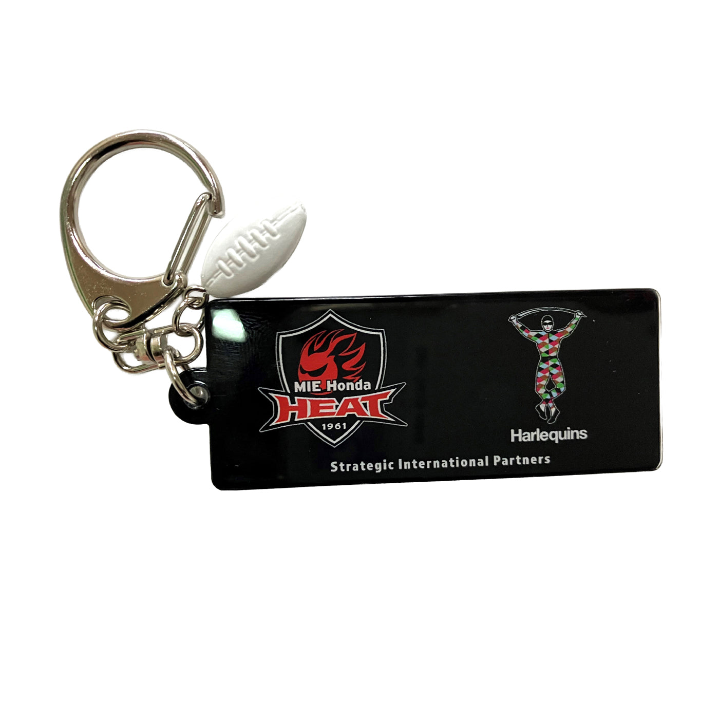イギリスのプレミアシップに所属する名門チームHarlequinsと戦略的パートナーシップを結んだ三重ホンダヒート。記念コラボ第1弾のアクリルキーホルダー。ラグビーらしくボールのキーチャームが付いています。日本限定販売。